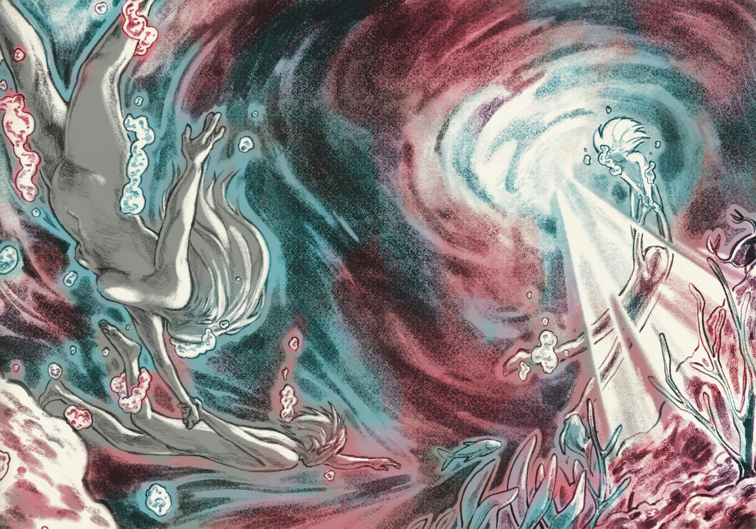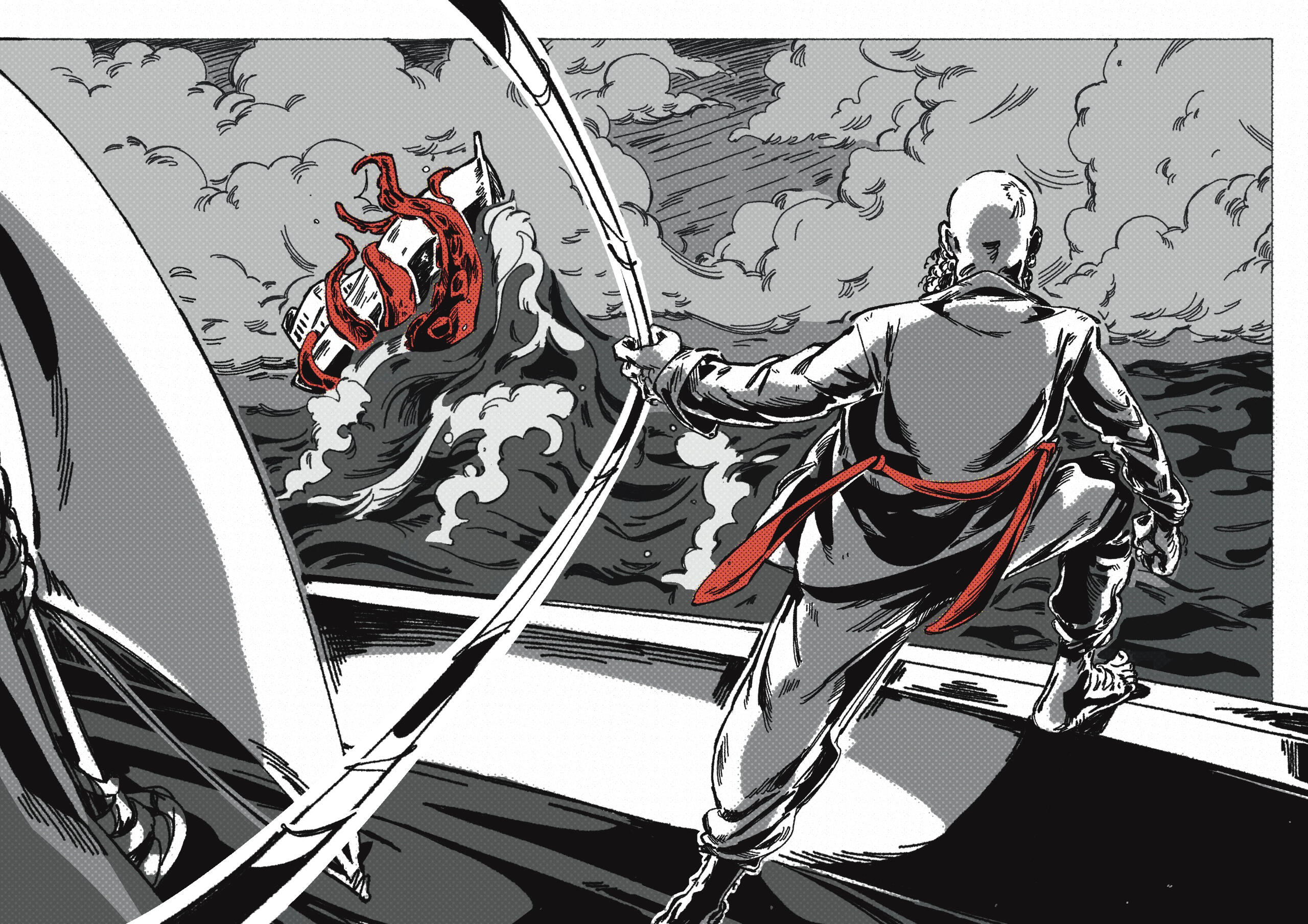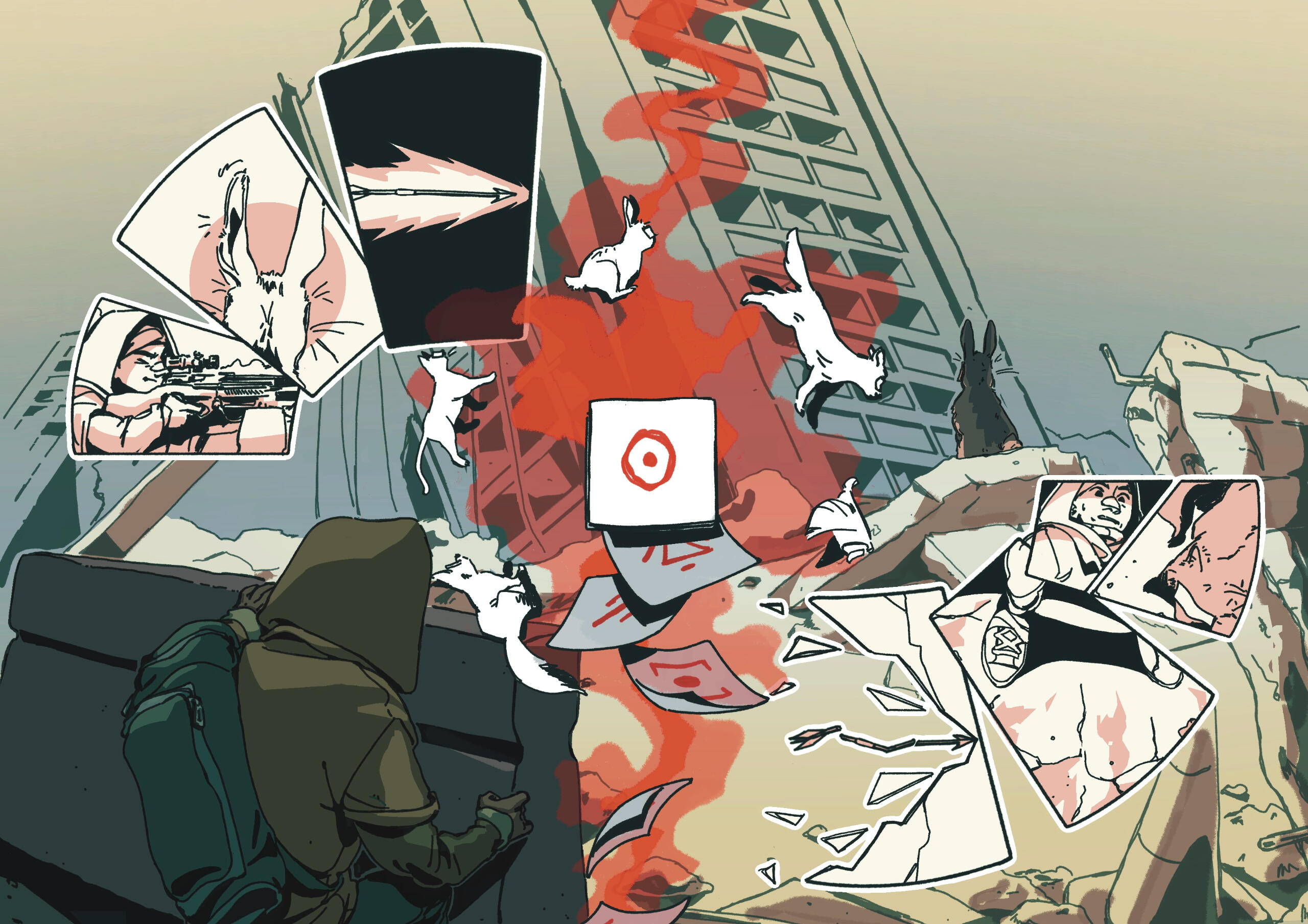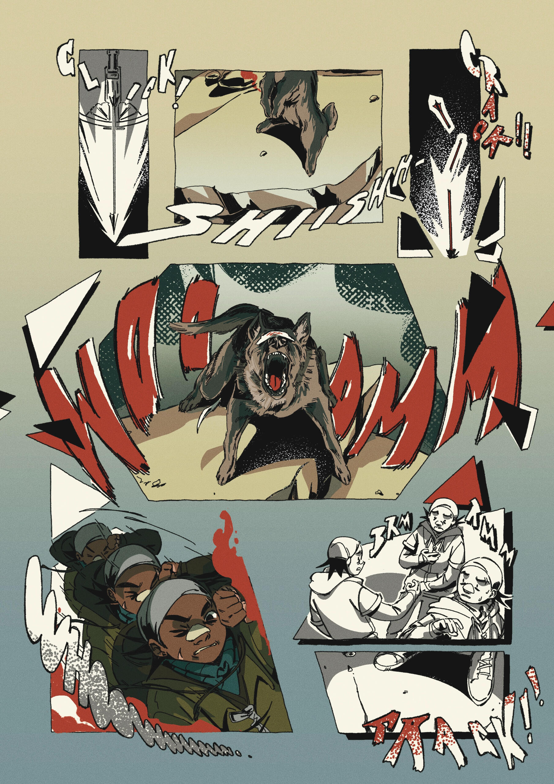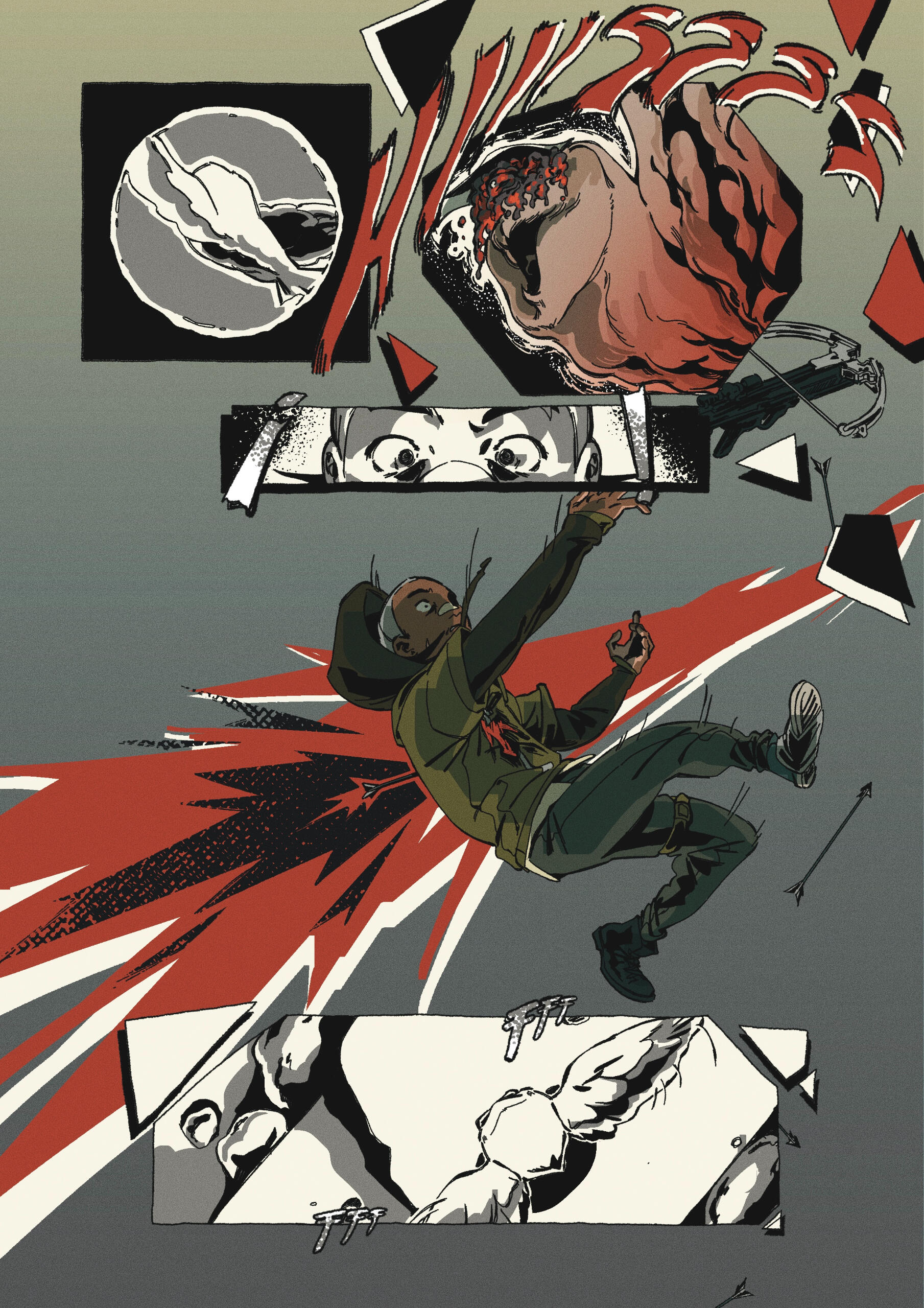 Cómic experimental de 5 páginas, con temática de distopia, un relato autoconclusivo, que utiliza la técnica narrativa “in extrema res” (comenzar una historia por el final). Trabajo digital. (2024)