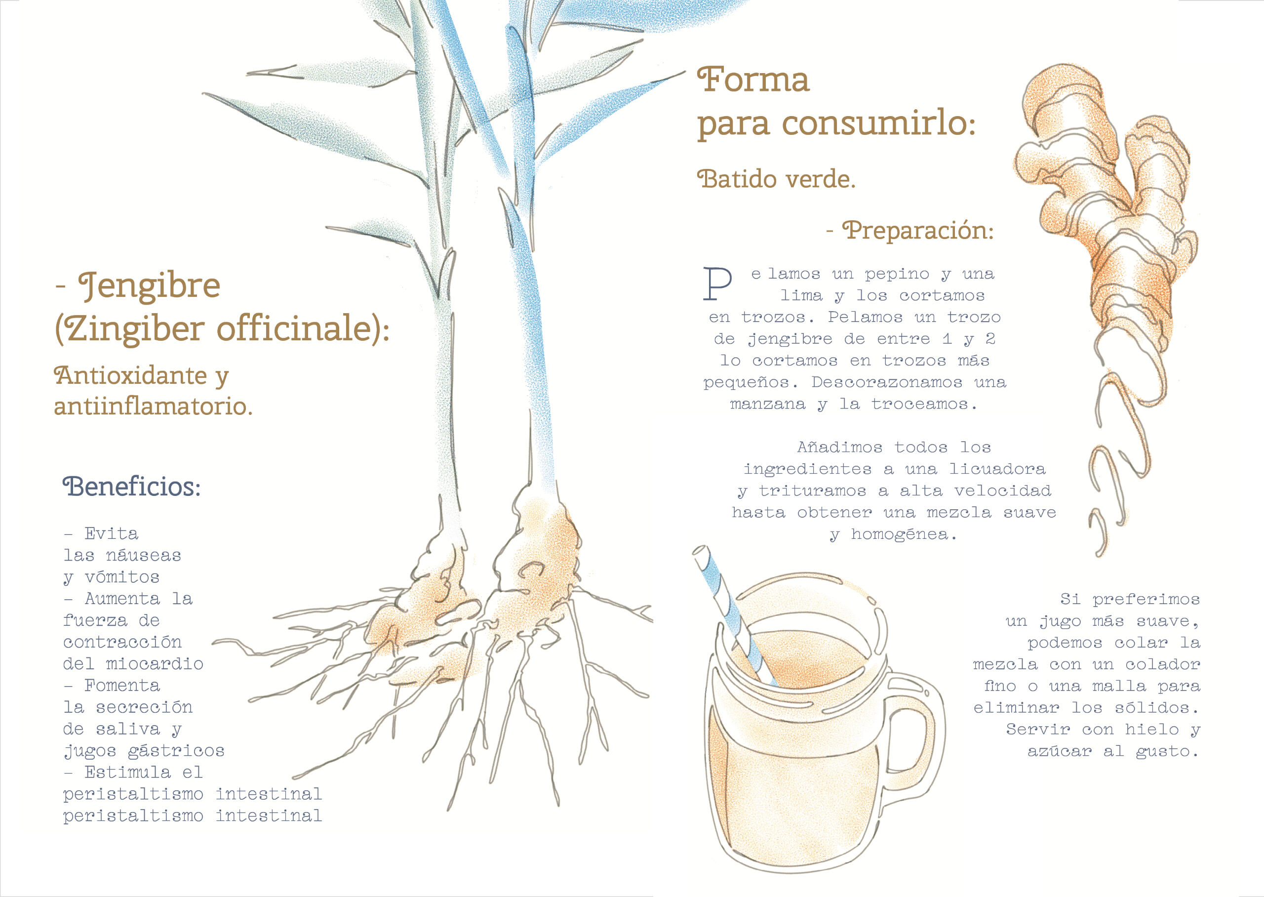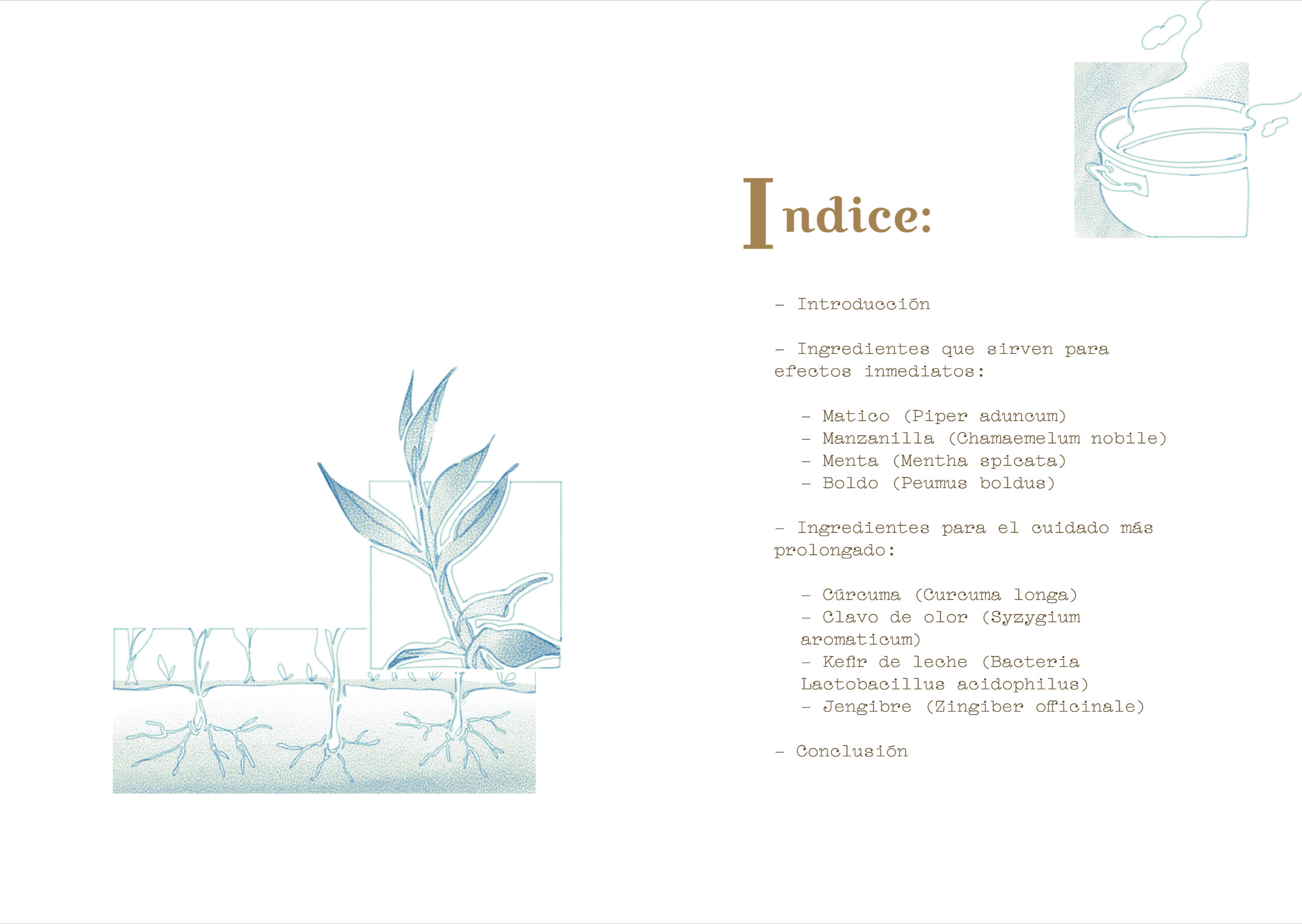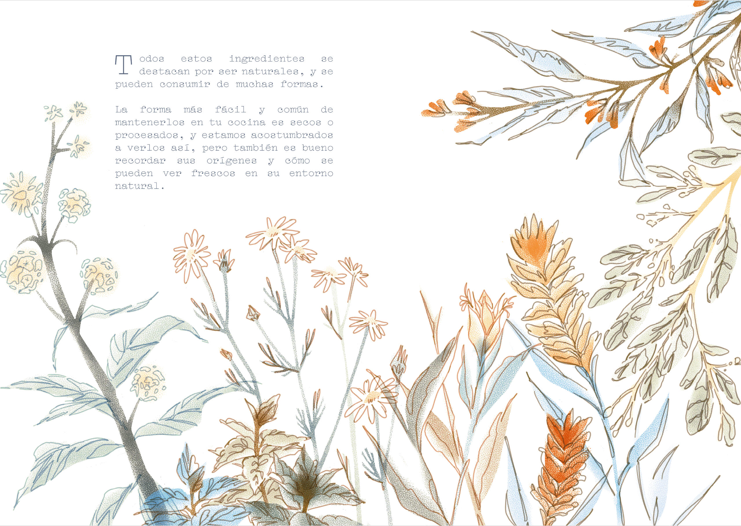 Recetario ilustrado, con un enfoque en la ilustración botánica estilizada y el autocuidado. Trabajo digital. (2024)