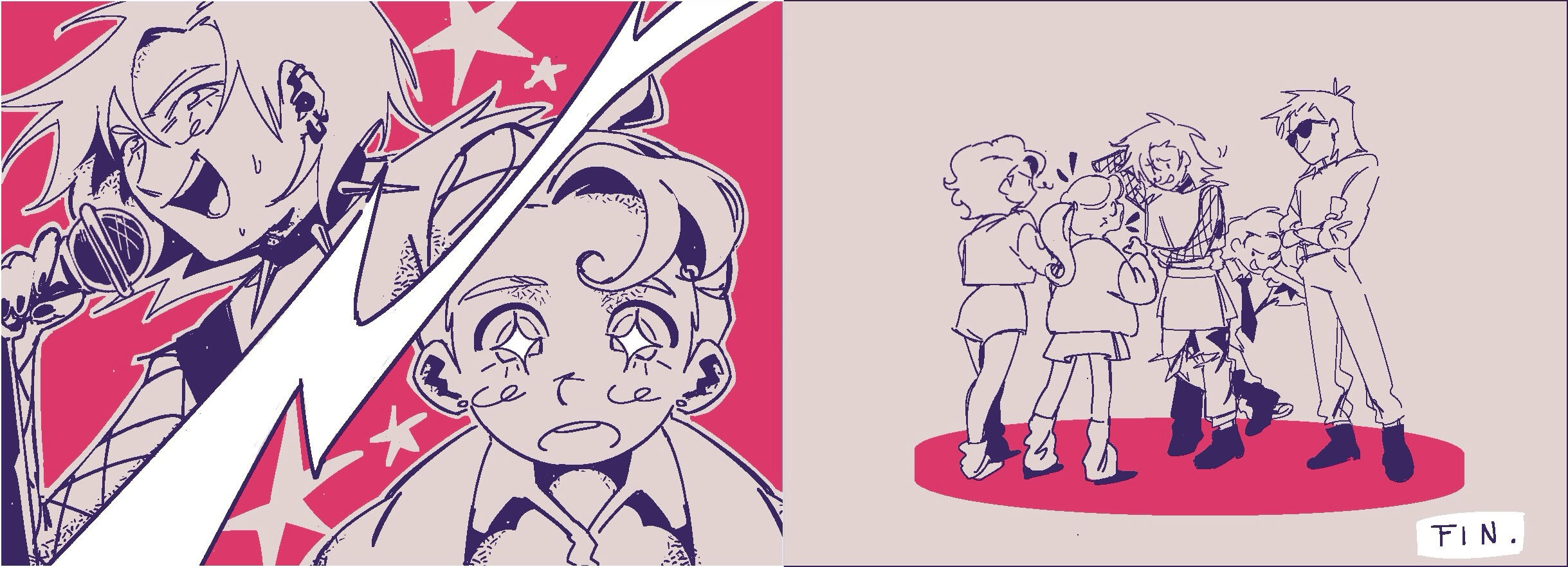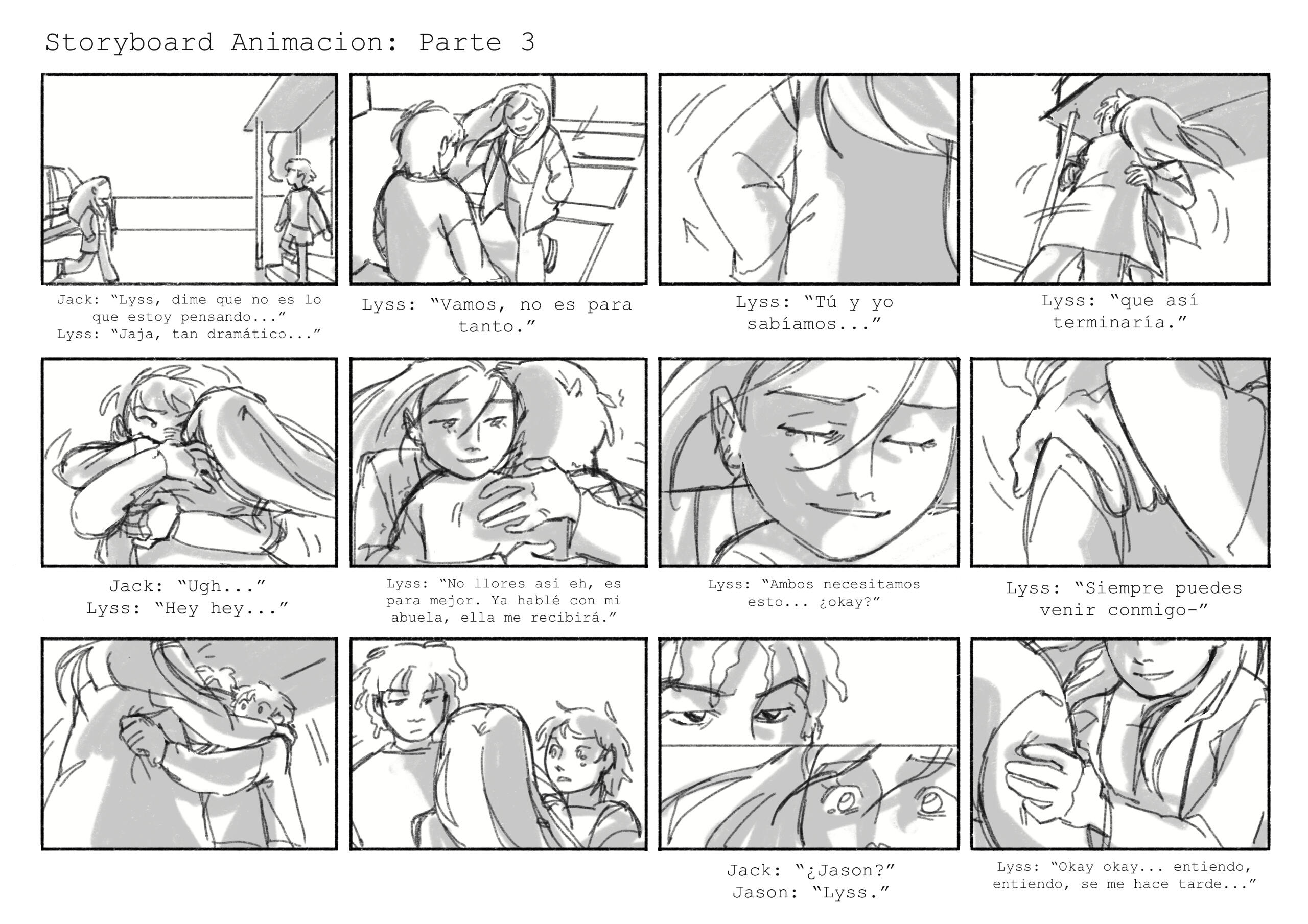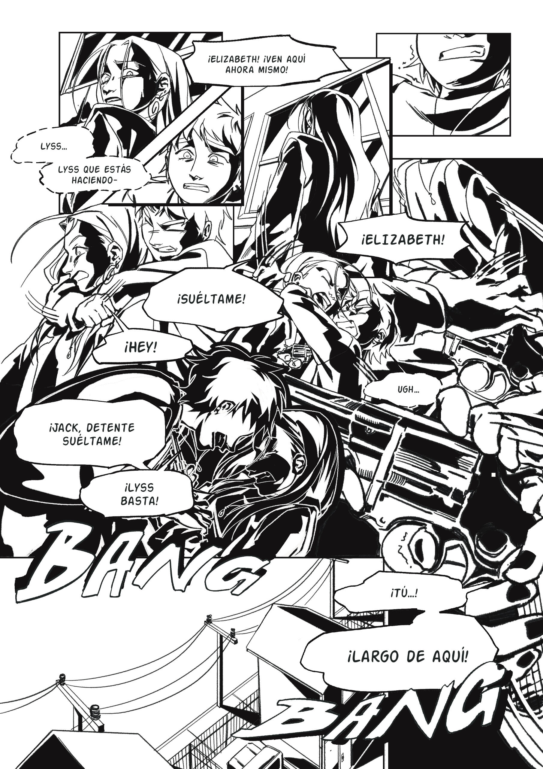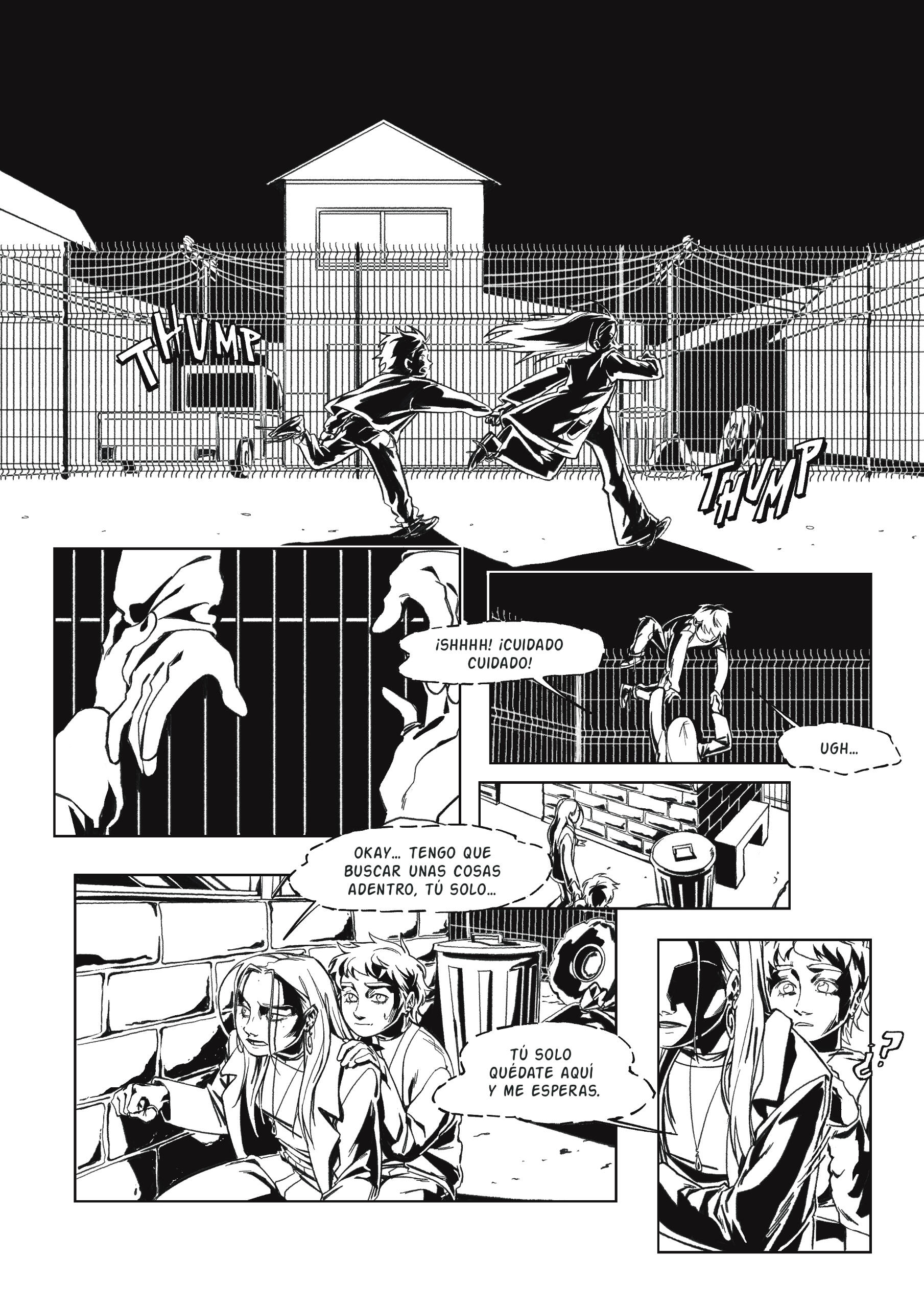 Cómic corto de 3 páginas, enfoque de contraste y líneas.